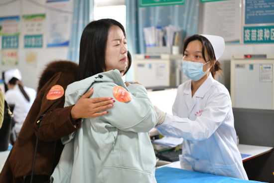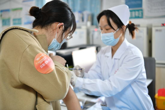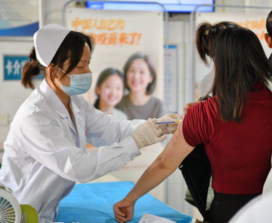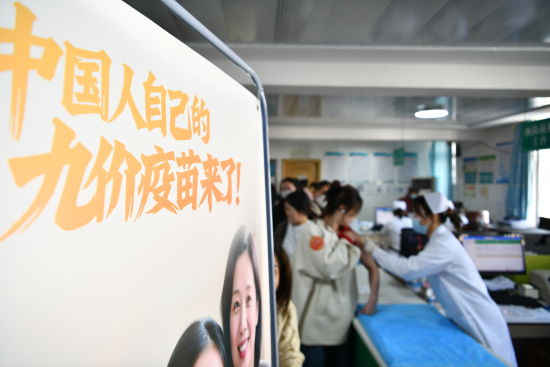 中新网安徽新闻11月26日电 市民26日在安徽省阜阳市阜南县疾病预防控制中心门诊部接种国产九价HPV疫苗。当日,国产九价HPV疫苗在阜南县首针接种,也意味着该县的宫颈癌防控体系进入了“九价时代”,国产九价HPV疫苗上市推动宫颈癌一级预防惠及9至45岁适龄女性。