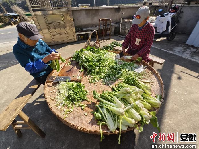 中新网安徽新闻11月27日电 (李海燕)入冬后,旌德县云乐镇的村民们便开始忙碌起来,他们搬出竹匾,备好刀具,着手制作一道承载着乡愁的冬日风味——香菜杆子。