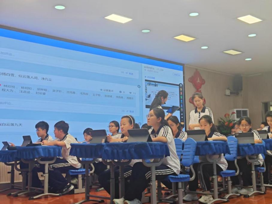 智慧教育的价值正在各学科深度释放。语文课上,大模型生成的虚拟人物让学生与屈原对话《离骚》、与苏轼畅谈人生;英语课上,语音评测系统成为“私人教练”,让腼腆学生也敢大胆开口;历史学科的阅读打卡平台上,优质笔记与感悟实时流转,激发自主学习动力。此外,智慧终端突破教室边界,走廊里的碎片化口语练习、图书馆的个性化微课推送,让主动探究成为校园新风尚。