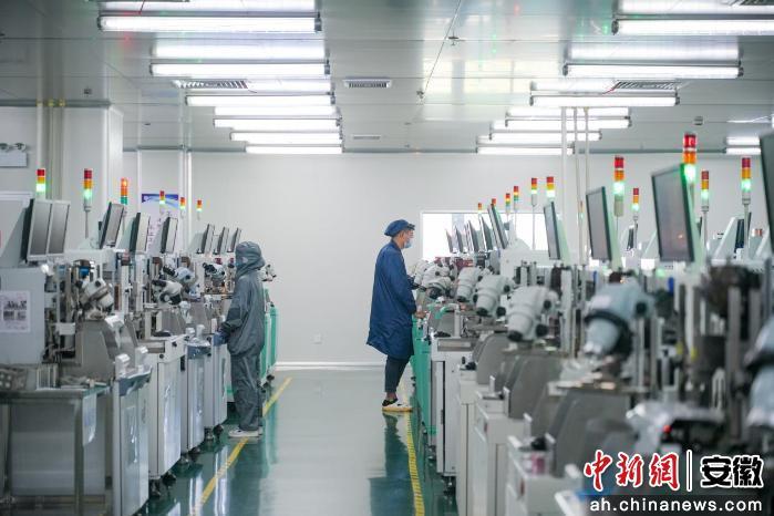 项目建设现场热潮涌动,企业车间同样生机勃勃。在安徽省富捷电子科技有限公司(以下简称“富捷电子”)生产车间,自动化生产线正开足马力、满负荷运转。