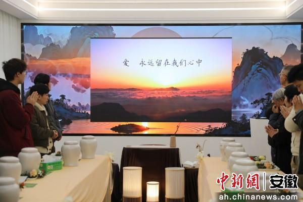 中新网安徽新闻12月24日电 12月23日,细雨蒙蒙,松柏肃穆。福寿园国际集团旗下合肥大蜀山文化陵园的数字礼厅内举行了一场集体生态礼葬追思仪式,深情送别16位无私奉献的遗体捐献者。他们在走完为医学研究奉献的旅程后,又选择以不保留骨灰的生态葬方式回归自然。