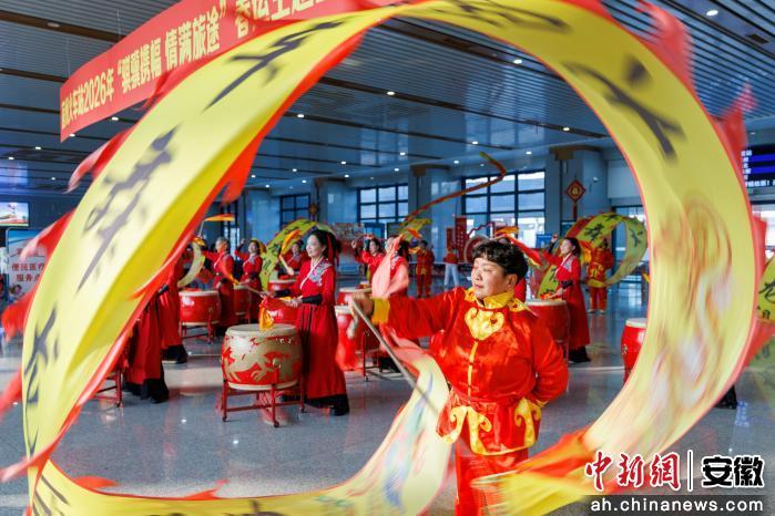 中新网安徽新闻2月2日电 (解静)2月2日,2026年全国春运启幕。在安徽宿州火车站,一场以“骐骥携福 情满旅途”为主题的春运宣传活动展开,非遗展演与便民服务双向赋能,为春运画卷添上一抹温润亮色。
