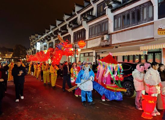 傍晚时分,随着主街长廊两侧的红灯笼亮起,街道变得暖意融融。不到七时,街道两旁已挤满了翘首以盼的观众。有从周边乡镇赶来的村民,有专程驱车而来的外地游客,还有扛着“长枪短炮”的摄影爱好者,现场热闹非凡。