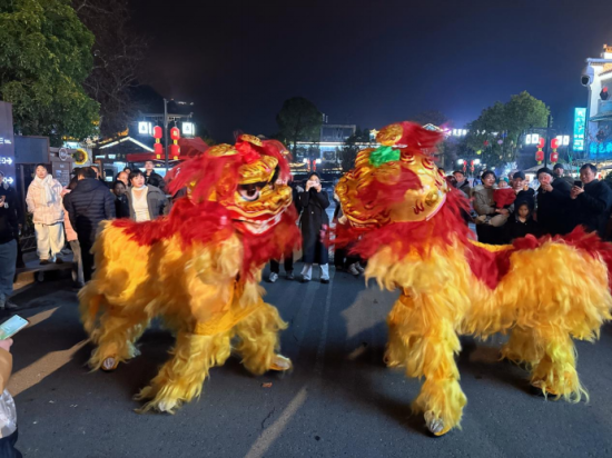 中新网安徽新闻2月18日电 (吴亚婷)“这才叫过年嘛!”17日晚,安徽省黄山市休宁县齐云山镇登封街边,一位抱着孩子的年轻父亲感叹道。当晚,作为“休宁有福 福满齐云”新春系列活动的特色项目,“龙腾狮跃”民俗表演在这里火热上演。