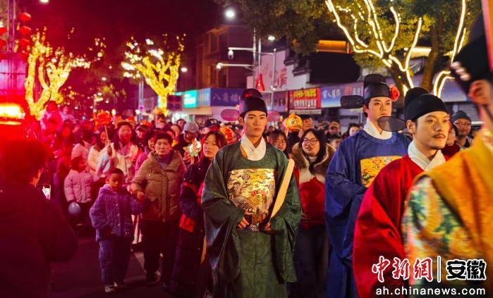中新网安徽新闻2月19日电 (吴玉洁 谷庆江 戴稳笑)19日晚,“状元提灯 鱼跃龙门”新春夜游会在休宁古城启幕。市民游客们在沉浸式体验中触摸千年状元文脉,感受古城独有的新春暖意。