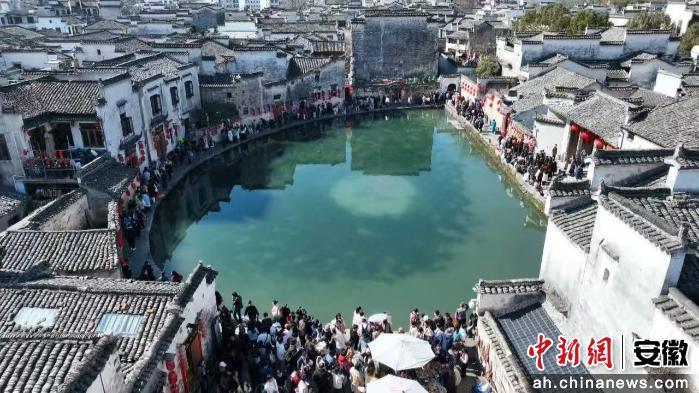 中新网安徽新闻2月21日电(曹霖)马年春节假期,被誉为“中国画里乡村”的黟县宏村张灯结彩、暖意融融,红灯笼缀满粉墙黛瓦,来自五湖四海的游客齐聚这座千年古村,赏徽派古韵、品徽州年味。