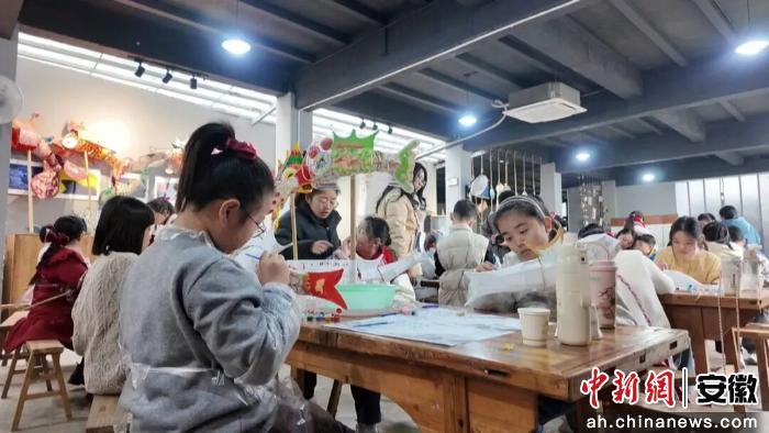 非遗鱼灯制作手艺人孙清萍说:“我们以徽州过大年为主题,开设了画鱼灯、一夜鱼龙舞、打食桃、吃锡格子茶等年味民俗活动,从2月3日开始接的研学团,目前大概有十来个团500多人参加。”