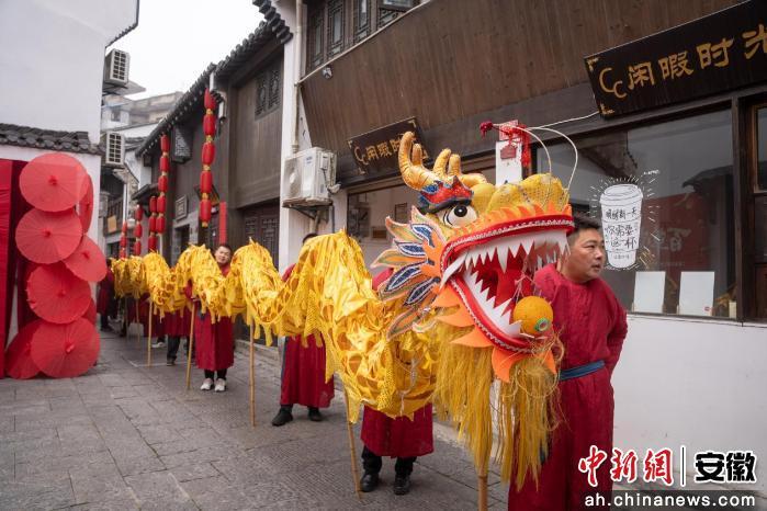 上午10时,祁门县东街历史文化街区人头攒动、锣鼓喧天。一盏盏造型精美的走马灯在舞动中轮轴转动、光影流转,灯上印有“福”“马”字等字样,寓意新的一年马到成功、福气满满。表演队伍穿行于古街巷陌,引得游客纷纷驻足拍照。