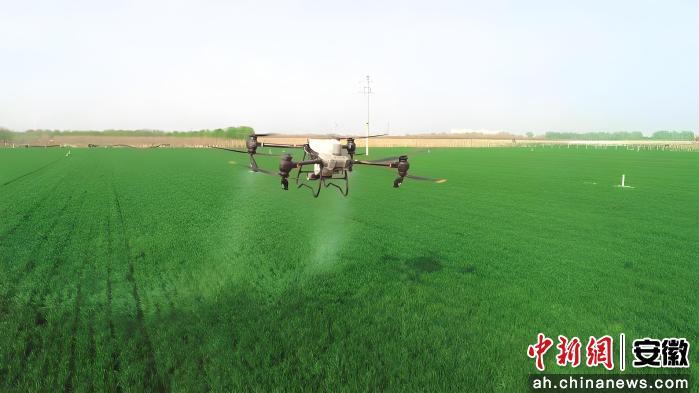 麦田里,植保无人机正在进行飞防作业。一位种粮大户介绍说,无人机一天可作业数百亩,作业效率大幅提升。目前,全乡已推广无人机飞防、水肥一体化等现代农业技术,实现节本增效。