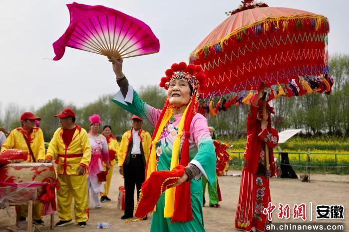 中新网安徽新闻3月31日电 (张坤)近日,在颍上花鼓灯入选国家级非物质文化遗产名录20周年之际,阜阳市颍上县在刘集乡举办花鼓灯文化活动,18支代表队、220余名演员共同演绎跨代传承的经典舞蹈。