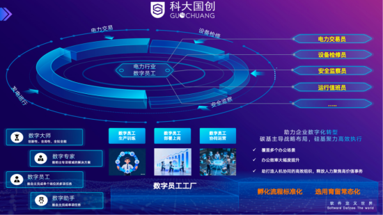 作为本次论坛的重点展示内容之一,科大国创数字员工工厂具备数字员工生产训练、部署上岗、协同运营的全链条管理能力,构建起“碳基主导战略布局,硅基聚力高效执行”的智慧电厂创新运营模式,高效助力电力企业数字化转型。