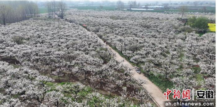 中新网安徽新闻4月7日电 (郭一鹏)近日,宿州市埇桥区符离大道清水村路段,道路西侧千亩梨花进入盛花期,洁白如雪,蔚为壮观。游客三五成群,或驻足观赏,或穿行花间,欢声笑语回荡在梨园深处。