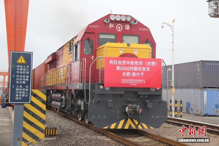 2025年6月19日,中欧班列(合肥)第5000列鸣笛启程。(资料图)章可为 摄