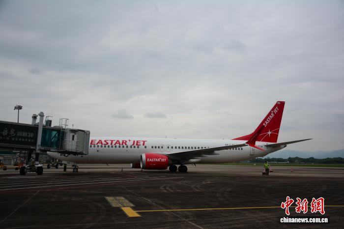 4月15日,韩国仁川至黄山国际包机航线开通。图为飞机抵达黄山机场。黄山机场 供图