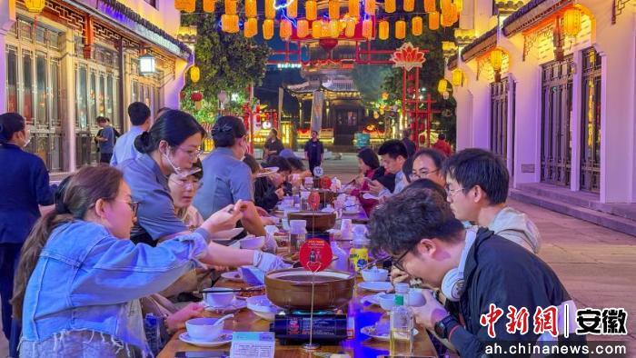 中新网安徽新闻4月22日电(范凤娇)近日,徽州区岩寺老街再添“长桌宴+演绎”沉浸式体验项目,将徽菜美食、老街场景与精彩演绎有机融合。