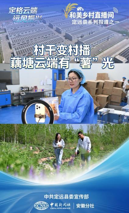一根“数字扁担”,挑起定远乡村新天地。在安徽省定远县,12个“和美乡村直播间”连通城乡、服务民生,村干部化身主播,直播带货助农惠民、文旅推介走上云端、农技政策直达田间……为此,定远县委宣传部联合中国新闻社安徽分社推出“定格云端 远见振兴”系列报道,聚焦藕塘、池河、西卅店等乡镇在推进“和美乡村直播间”建设中的特色亮点,解锁乡村振兴新图景,助力现代化美好定远建设。