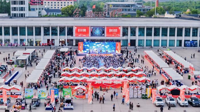 市集区域汇集了鲜米酿、高塘馓子等农特产品,以及吴山铁字、长丰剪纸、藤编等传统技艺展示。荣事达智慧文旅舱、新能源汽车后备箱集市等新消费场景也一同亮相。此外,现场同步开展人才招聘和“欢乐套贡鹅”等互动游戏。